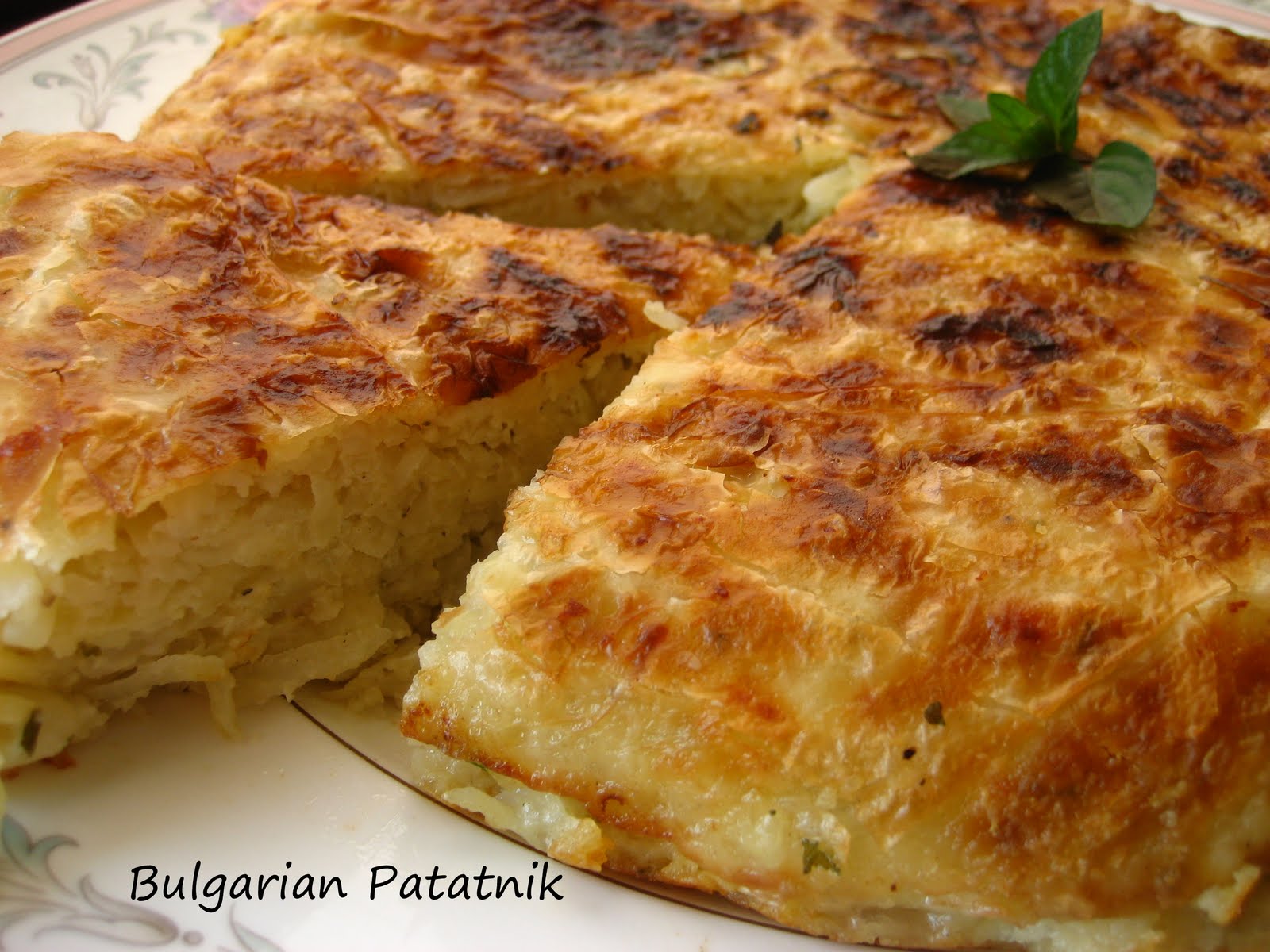 Bulgarian Patatnik...Shredded Potato and Cheese Pie with Mint. I've been harvesting a few things from my garden this year... it wasn't a great year, but I am always thankful for what I can harvest. I know quite well how it is during wintertime... when I don't have fresh herbs at my fingertips, when I don't have fresh chives and green onions, when raspberries are mainly the frozen kind, and when vegetables are, well, not the best.